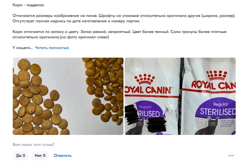 Осторожно! Ozon торгует поддельными кормами для животных5