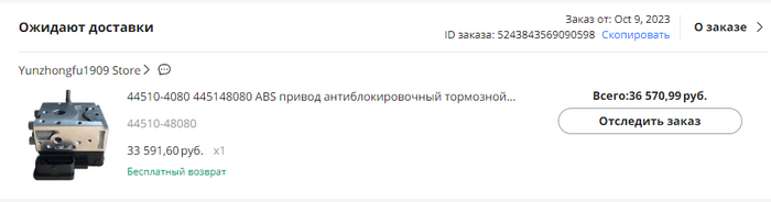 Собственно, началось всё в октябре 2023 года, когда я управляя автомобилем вдруг остался без тормозов, вернее почти без тормозов. Отказал блок ABS он же усилитель тормоза в моём случае. Благо всё обошлось и я смог доехать до дома, хотя пару раз чуть не въехал в задницу резко тормозящего авто. Стал искать ему замену. Новый под 200к... Б/У на авито под 80к... И тут в поиске нахожу предложение на алиэкспресс за 33,5 килорублей... Радуюсь)) Вот, думаю, мой вариант))) Смотрю отзывы - их нет, но есть 15 дней гарантии бесплатной оправки назад по любой причине.