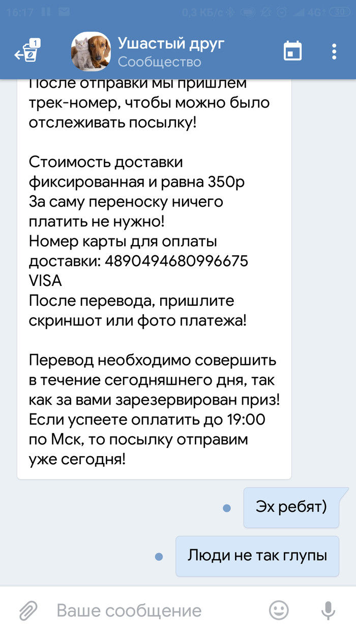 Хочу еще раз все предостеречь, если вы что то выйгрываете в интернете и в условиях конкурса не прописана доставка , три раза подумайте прежде чем отправить кому то деньги.