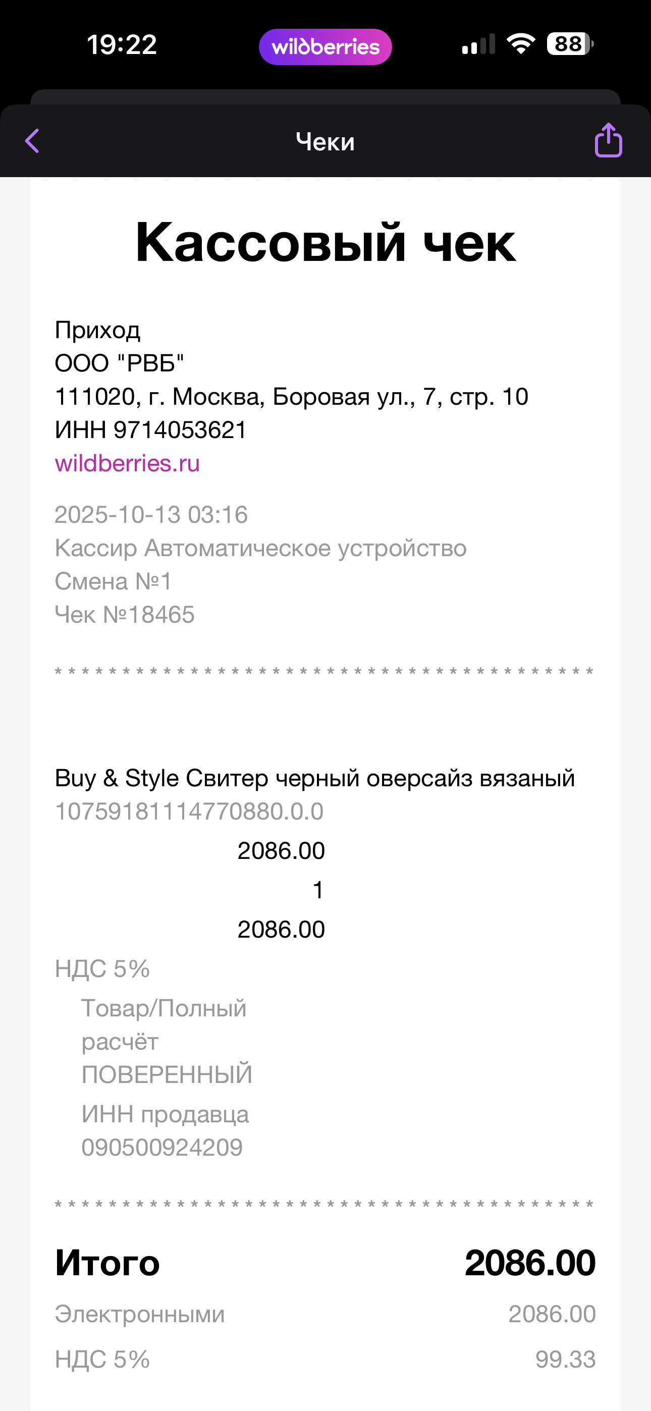 Суть: заказала три кофты на выбор, способ оплаты- при получении. Всегда делаю именно так: пришла, все вещи посмотрела/померила, одна из них подошла, закидываю деньги на счет wildberries через сбп, и менеджер списывает их.