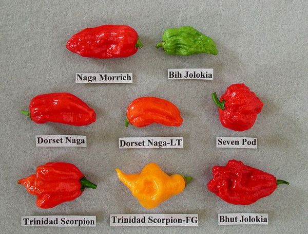 - Десятая - от 100 тыс. ЕШС. Это Trinidad Moruga Scorpion Red, Naga Jolokia. Это взрывные виды перца.
