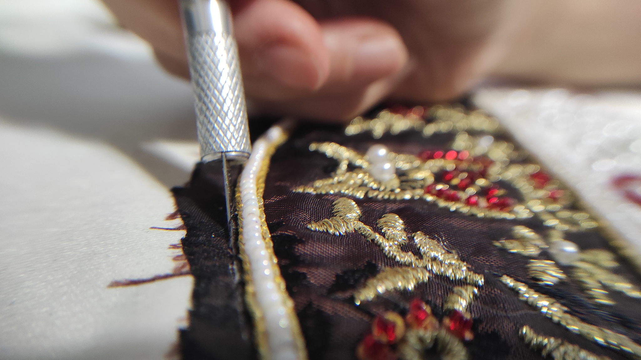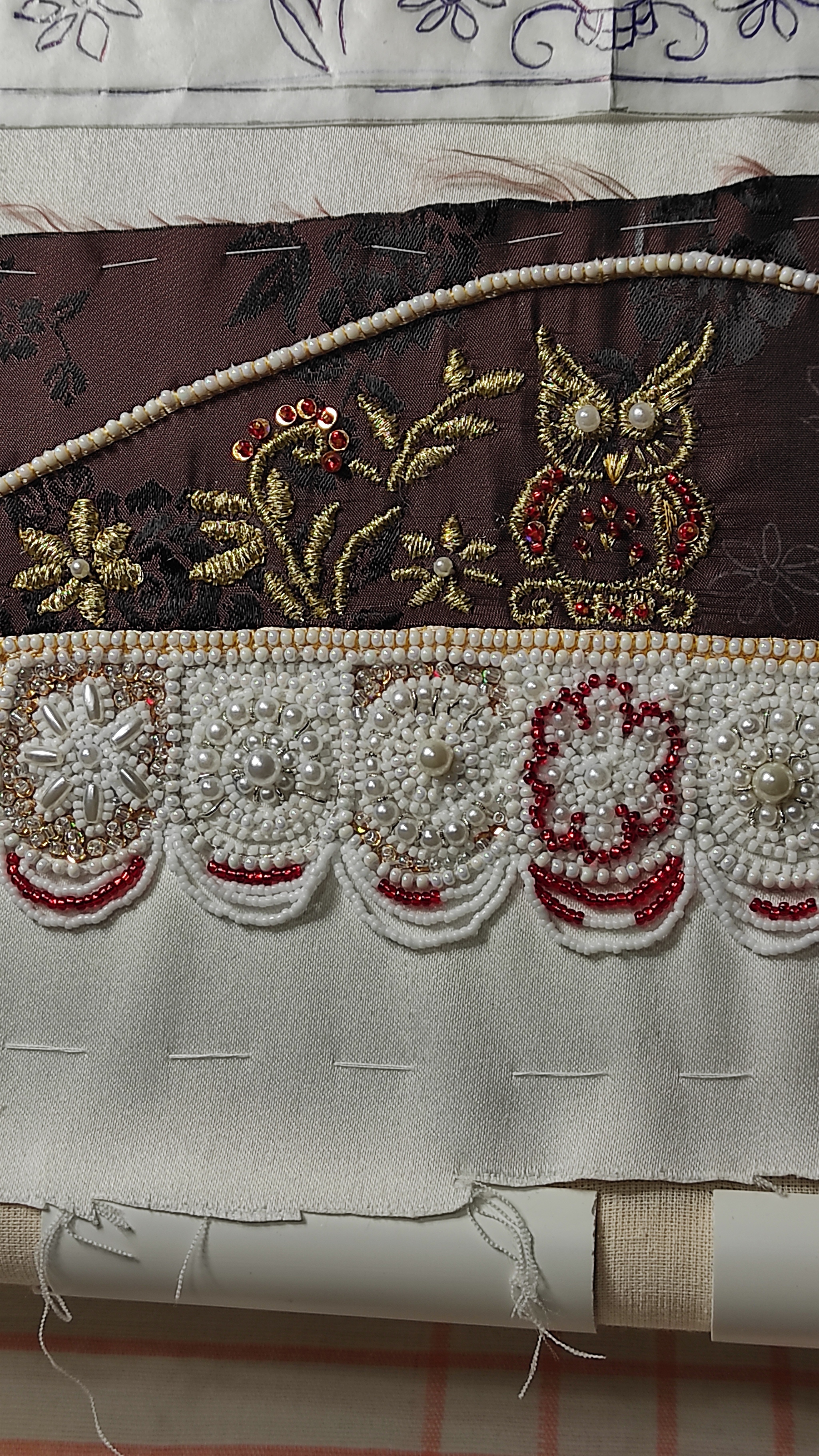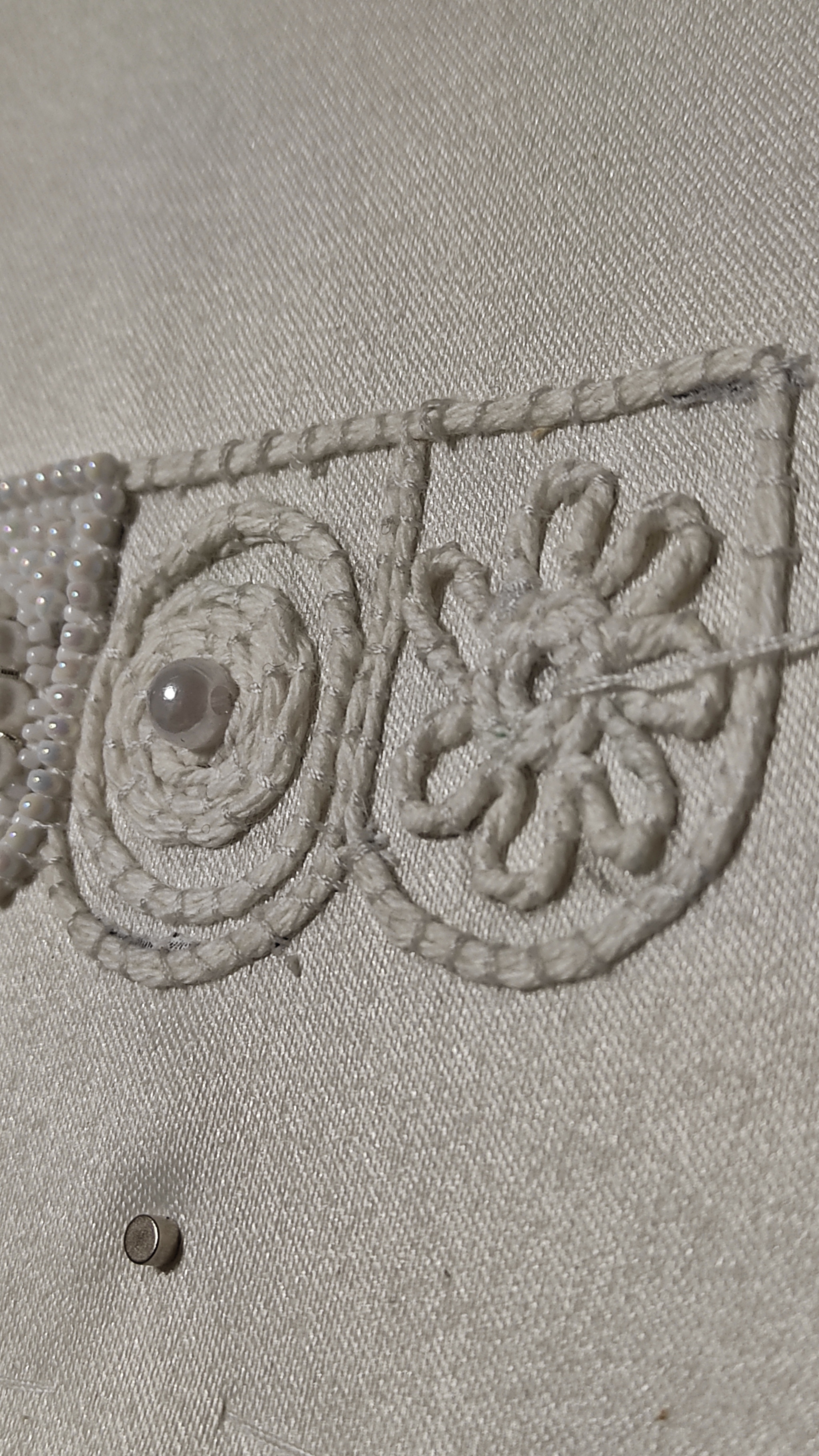 Выкладывание бели. Прошивала по кальке. Калька потом удаляется.