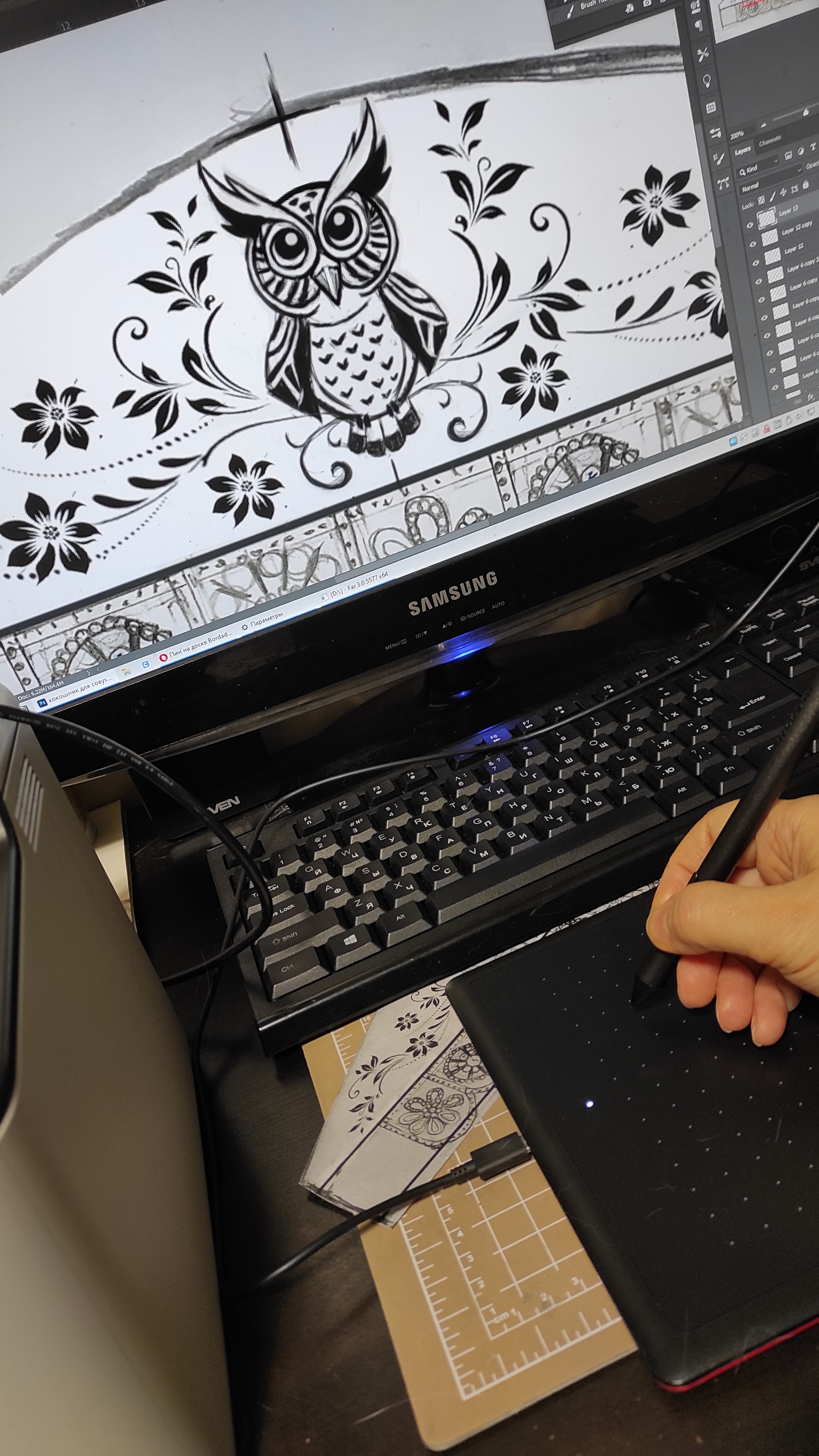 Перенос рисунка и начало работы. Сначала укладывается бель.