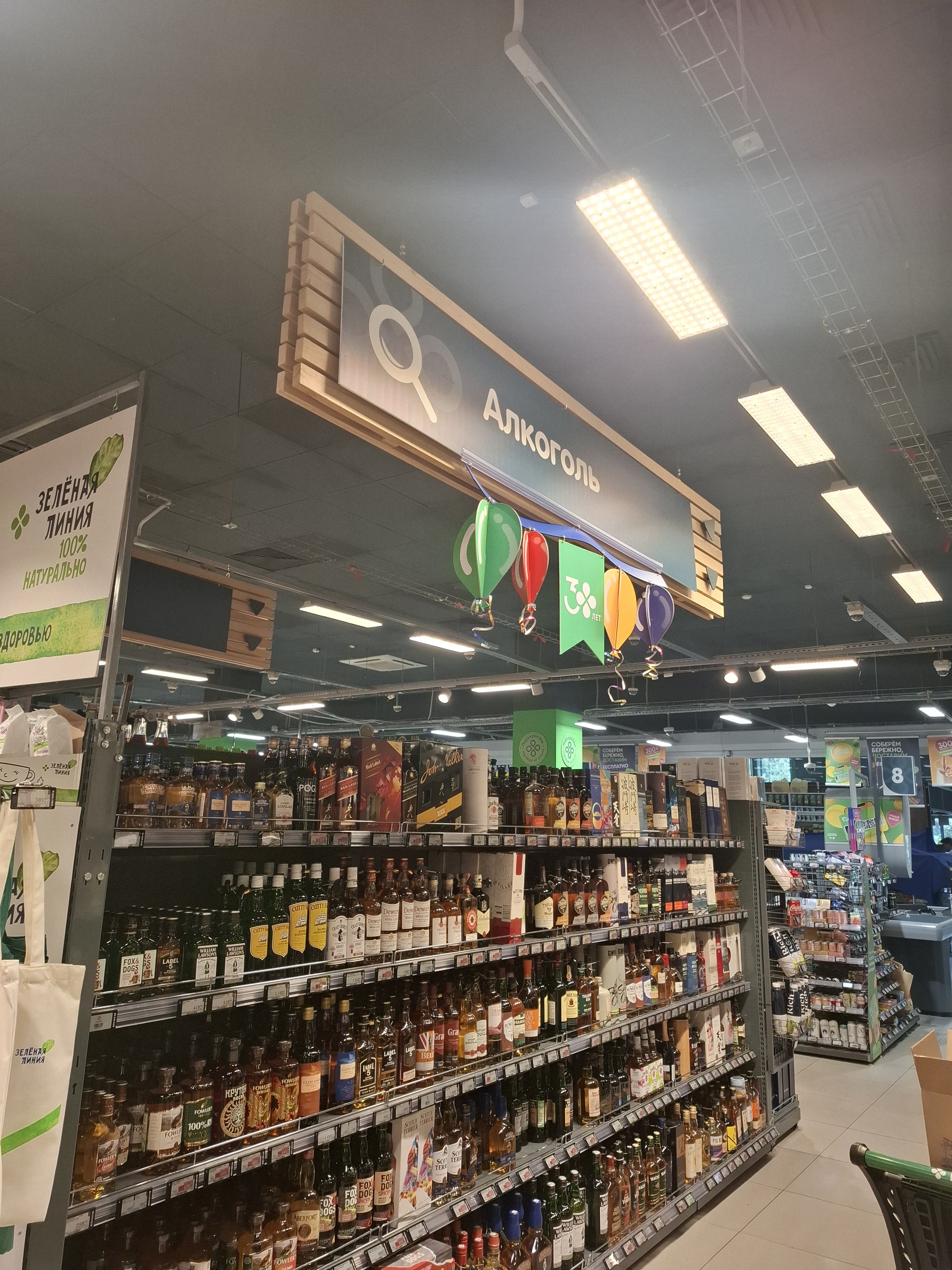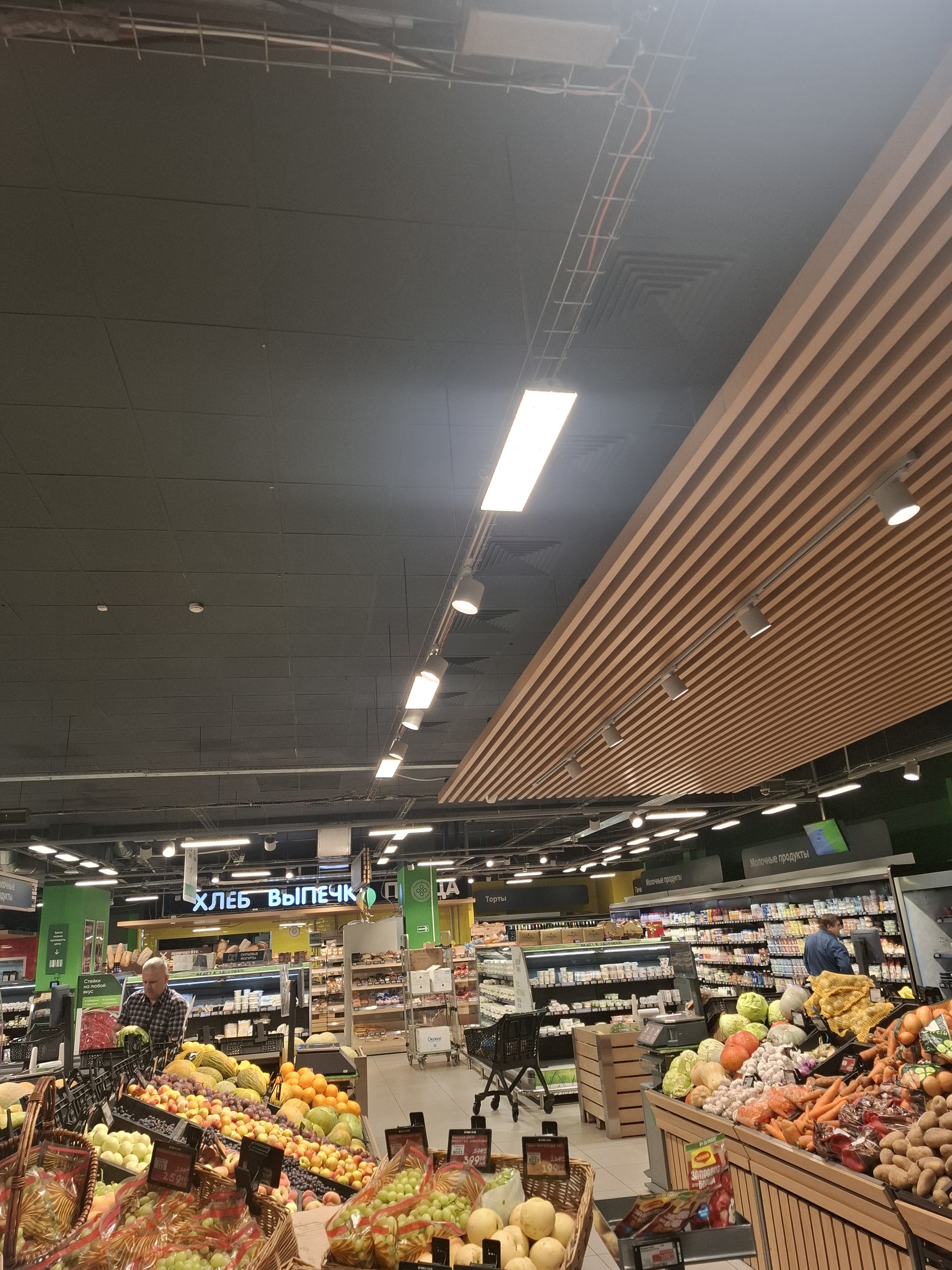 Отдел ФРОВ(фрукты овощи), хлеб , вино/коньяки/ виски и.т.д Цвет более желтоватый чем обычно.