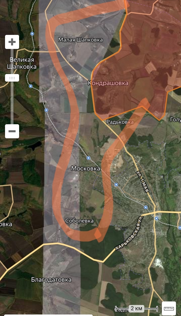 Также заявлена Соболевка к Западу от Купянска Харьковской области, но там вырисовывается невообразимая конфигурация фронт (как и с ранее заявленной Московкой)