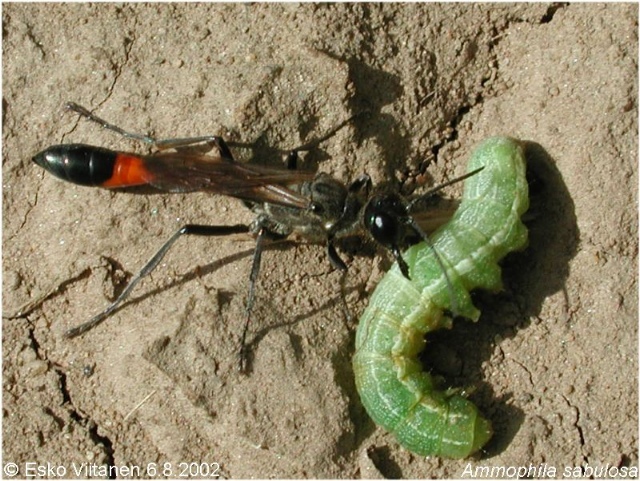 Аммофилы - гусеницы бабочек. Парализовать легко, но вот тащить не очень просто.