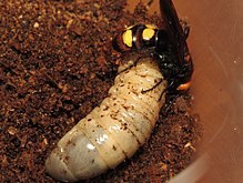 Найдя их самка парализует личинку уколом жала в грудной нервный ганглий, после чего откладывает одно яйцо. Личинка гигантской сколии питается личинкой жука-хозяина, выедая её полностью.