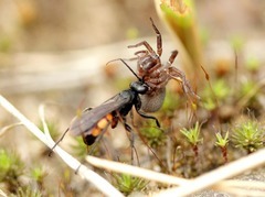 Другие одиночные осы сначала роют нору и только затем отправляются на поиски добычи. Преимущество такого способа очевидны: не обязательно охотиться за крупной и опасной едой, можно заготовить побольше мелкой, да и вероятность потерять консервы меньше.