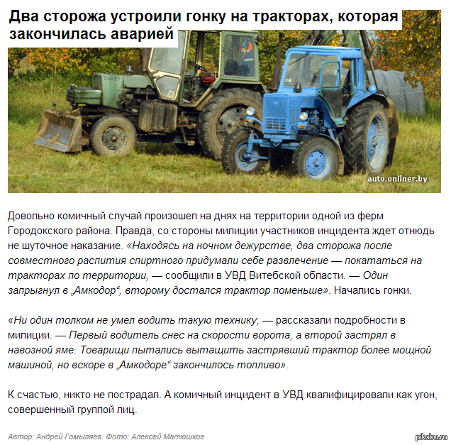 6 ianphobos От белорусских трактористов даже Форсаж отдыхает! 11 лет назад название честно сперто из лучшего коммента онлайнера) Республика Беларусь Форсаж Onliner by