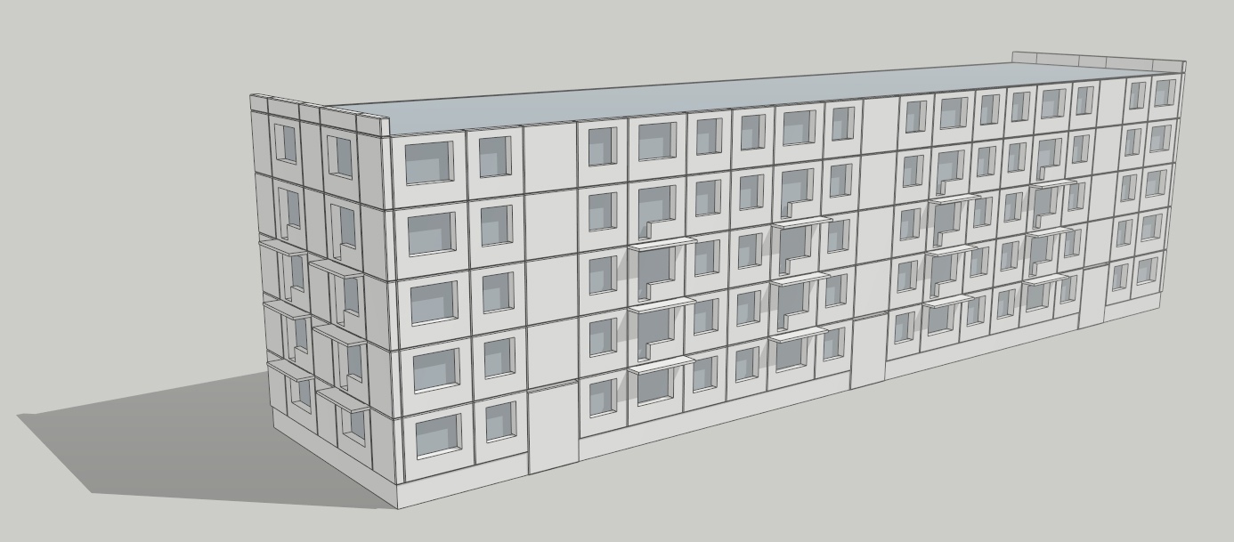 Начали создание дома мы с оцифровки чертежей. Для начала мы нашли следующее размеры панелей и оконных проёмов: