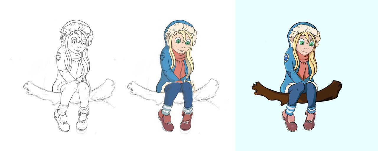 Контур и цвет накалякал в фотошопе и вдумчиво обвёл и залил это в иллюстраторе.