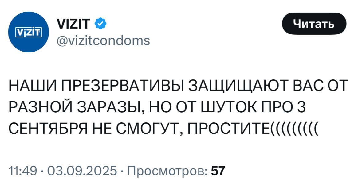 5340 mi2dle От Vizit на третий день сентября1 4 месяца назад И снова Vizit не подвёл! 😁 VIZIT Скриншот Юмор 3 сентября X (Twitter) 266 178 28 5 3 2 2 Ещё 2