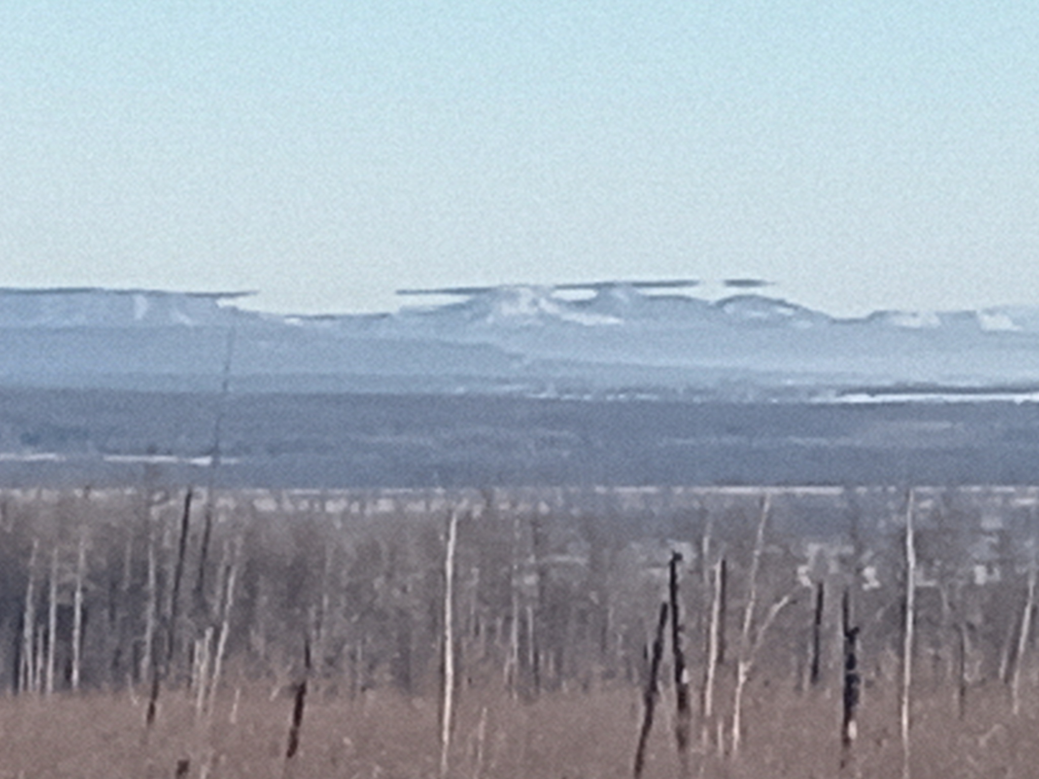 Вчера было не слишком холодно, ночью -33°С, днём около -20. В ясные морозные дни несколько раз наблюдал подобное явление, но заснять удалось лишь вчера. Вершины сопок как будто растягиваются в ширину, или из них вырастают продолжения, отрываются от них. Север Бурятии, истоки Витима.