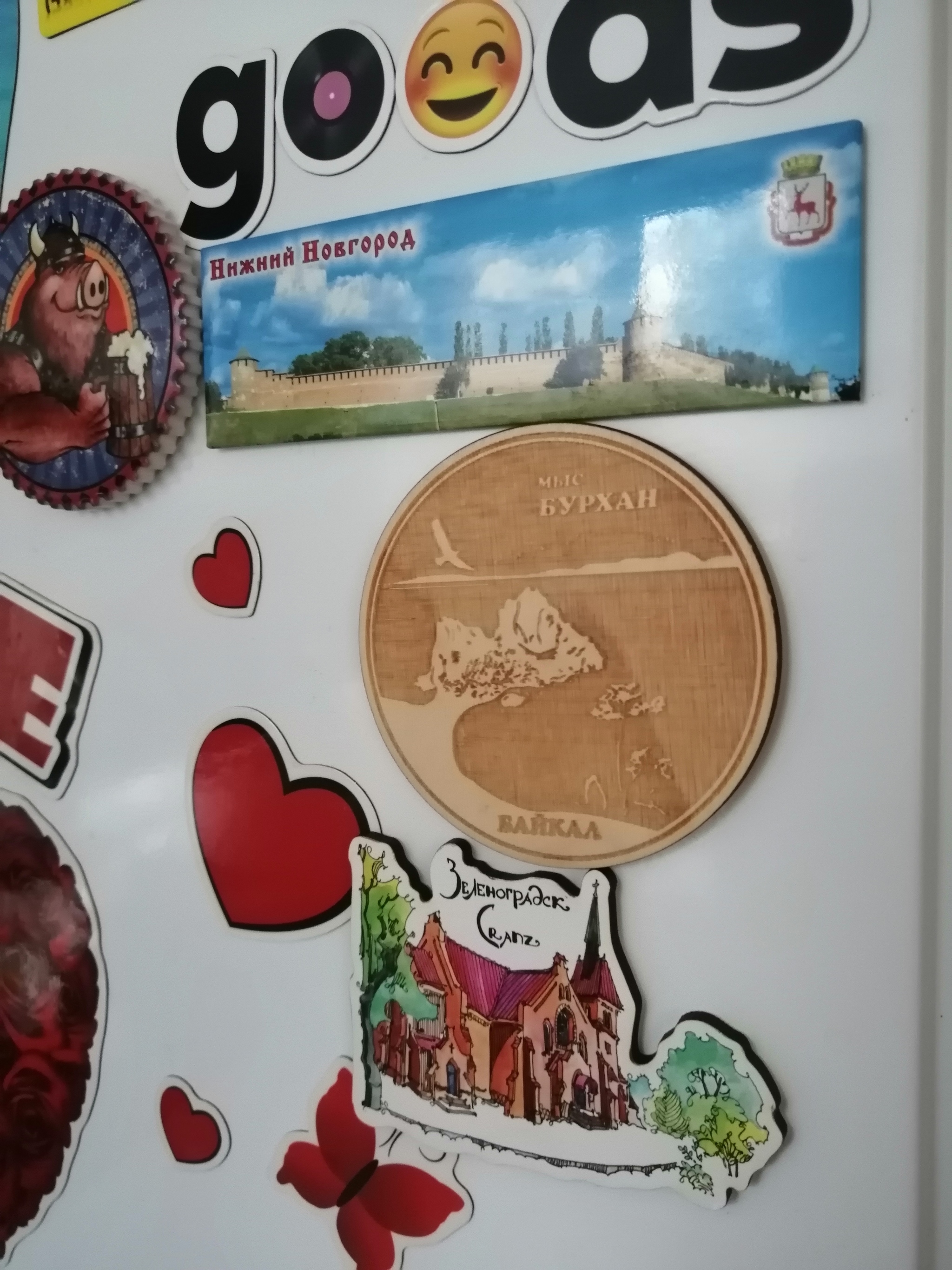Коробочка раскрыта!!! И сразу очаровательный деревянный магнит и множество вкуснях. Магнит прошел через все ручки, все рассмотрели и повесили на холодильник к другим магнитикам от обменов и поездок.