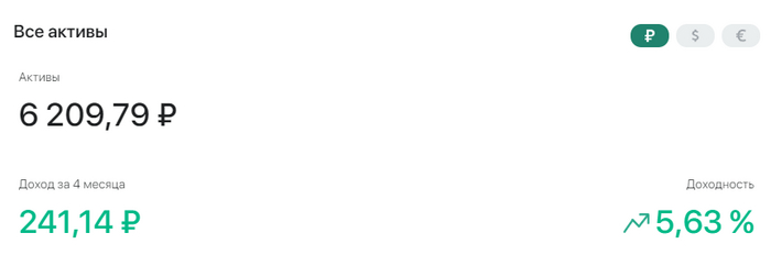 Пополнение в этом месяце не 1000, а сразу 3000, потому как это минималка для запуска. Сидеть смотреть 2 месяца на счёт на котором ничего не происходит, было неохота. Дальше всё будет честно по 1000 в месяц.
