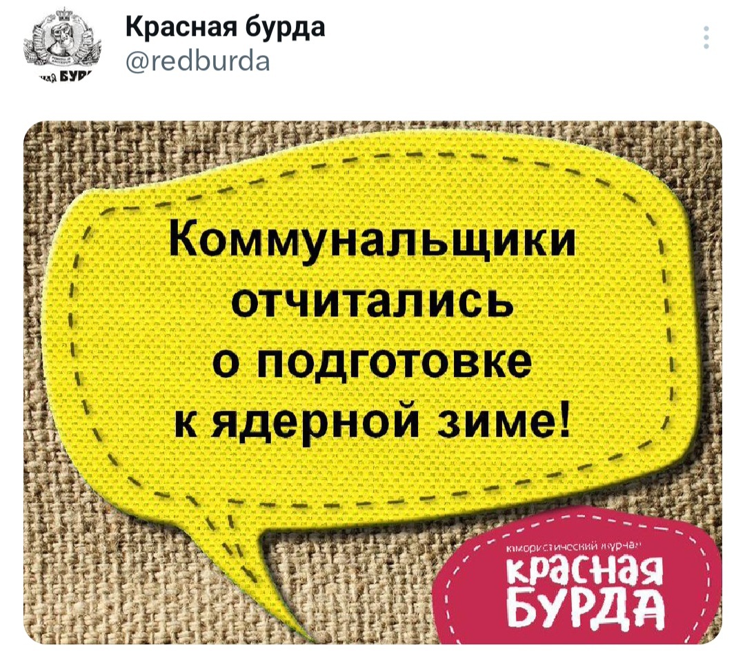 fylhtq2222 Юмор Отчёт о готовности 1 год назад Черный юмор Красная бурда Скриншот X (Twitter) Подготовка к зиме Коммунальные службы Ещё 0