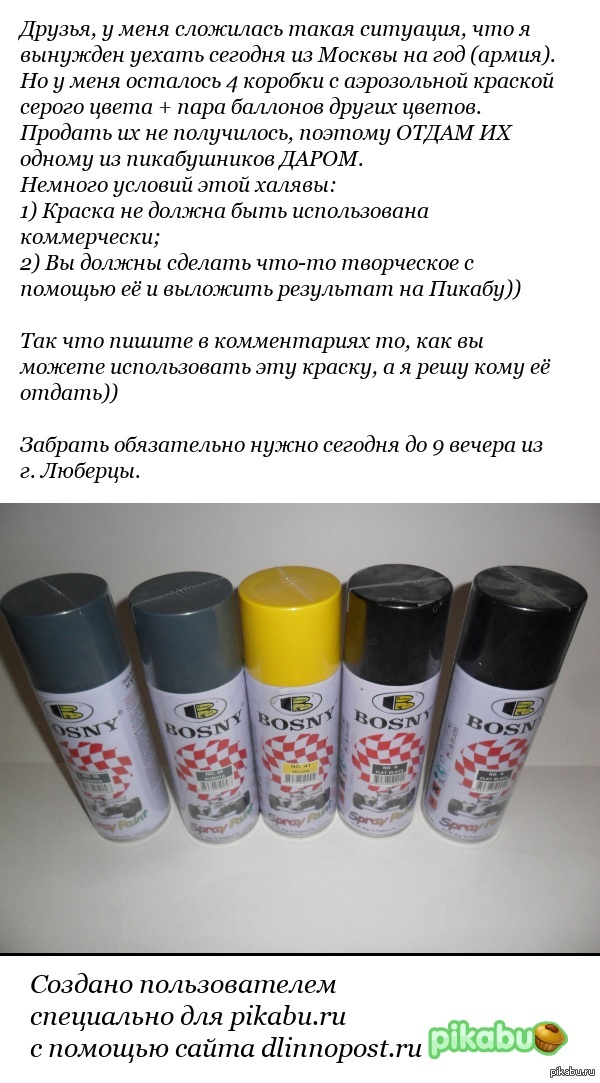 К сожалению сегодня после работы мне до люберец добираться крайне не удобно((( Надеюсь тот кто возьмёт краску согласится отдать мне несколько баллонов для благого дела - я собираюсь закрашивать рекламу спайсов, она конкретно достала!