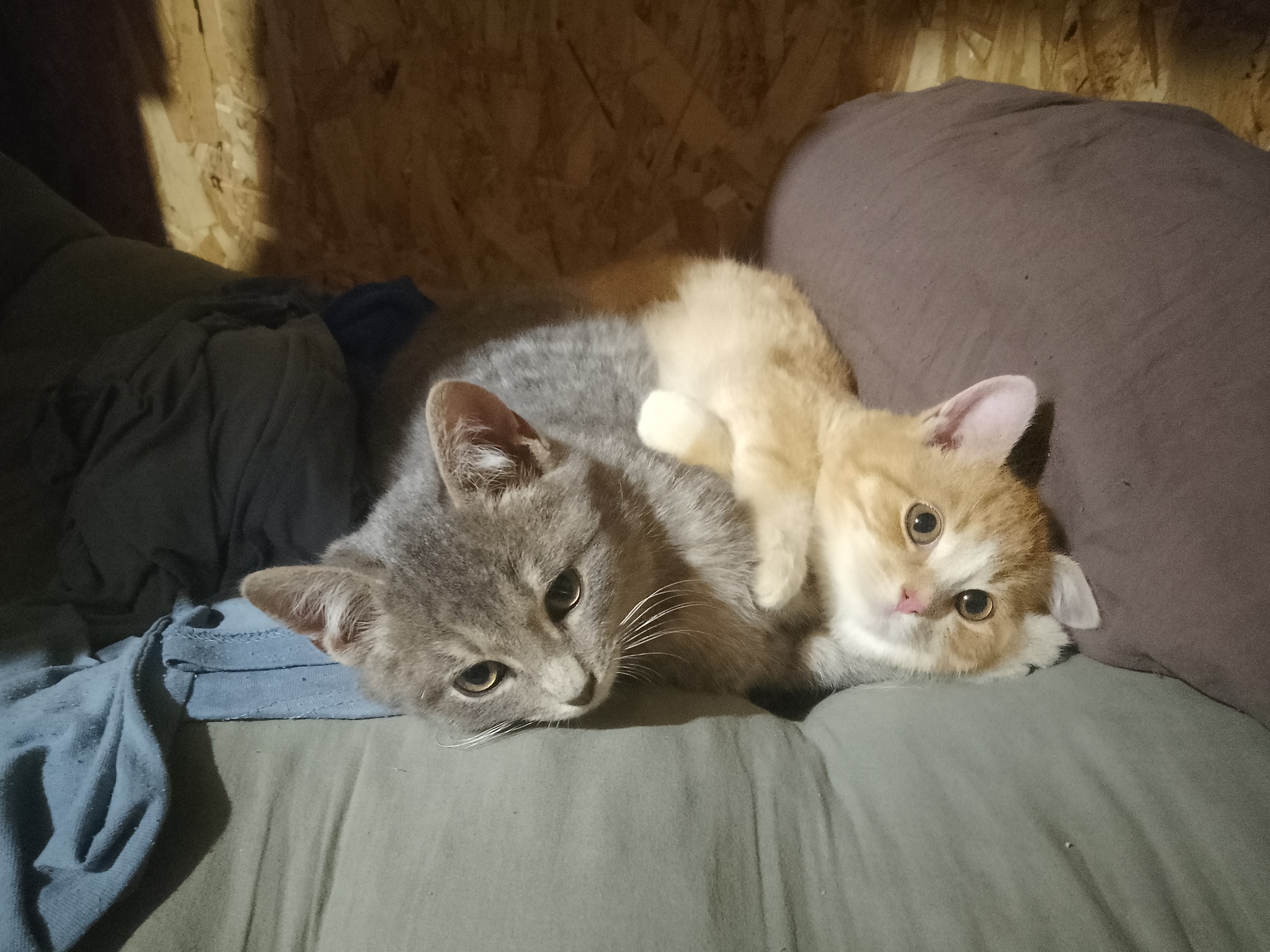 Две мышеловки прибились к бытовке на объекте, через неделю сваливать, хз куда их девать, придется выкидывать на улицу, КП особо не заселенный и отдаленный. Недалеко от п. Шишкин лес по Калужскому шоссе возле ЦКАД. Рыжая игривая девочка, лупит сухой корм. Серый поспокойнее мальчик, выпрашивает что повкуснее. В лоток начали ходить сразу самостоятельно. Помогите хоть советом куда их деть. (На вид может месяца три)