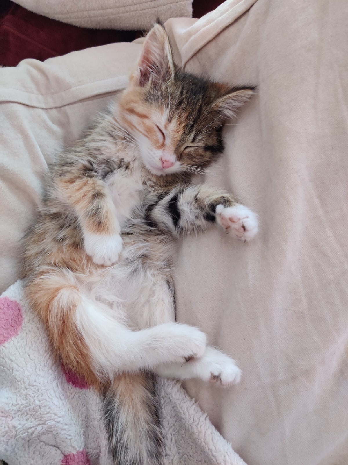 Ищет дом котенок-девочка, 2,5 месяца. Забрана в дом из подвала, от хворей пролечена, от паразитов обработана, к лотку приучена.