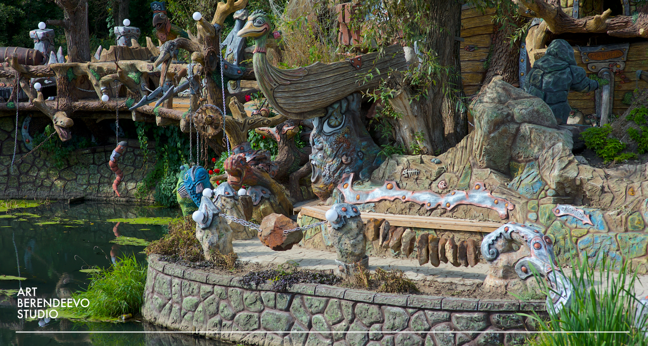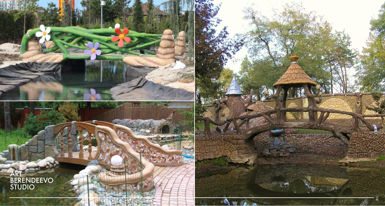 Грамотно расположенный и обустроенный искусственный водоем способен подчеркнуть природный ландшафт и придать естественный облик любому пространству. За долгие годы благоустройства дачных резиденций, отелей и аквапарков у ART BERENDEEVO STUDIO накопился колоссальный опыт и множество креативных идей по тематическому оформлению декоративных водоемов.