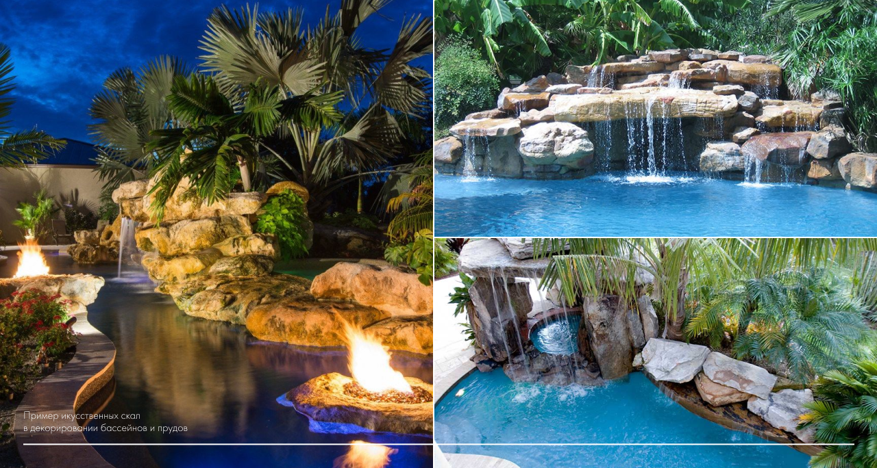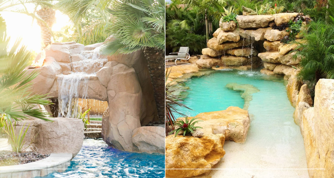 Мастера студии ART BERENDEEVO занимаются декорированием различных водных сооружений как в парковых общественных зонах, так и на частных загородных территориях. Для оформления бассейнов и водоемов мы используем арт бетон, зарекомендовавший себя в качестве самого надежного и эффектного отделочного материала. Искусственные водоемы, декоративные водопады и внутренняя отделка бассейнов от ART BERENDEEVO STUDIO отличаются оригинальным оформлением и высокими эксплуатационными характеристиками.