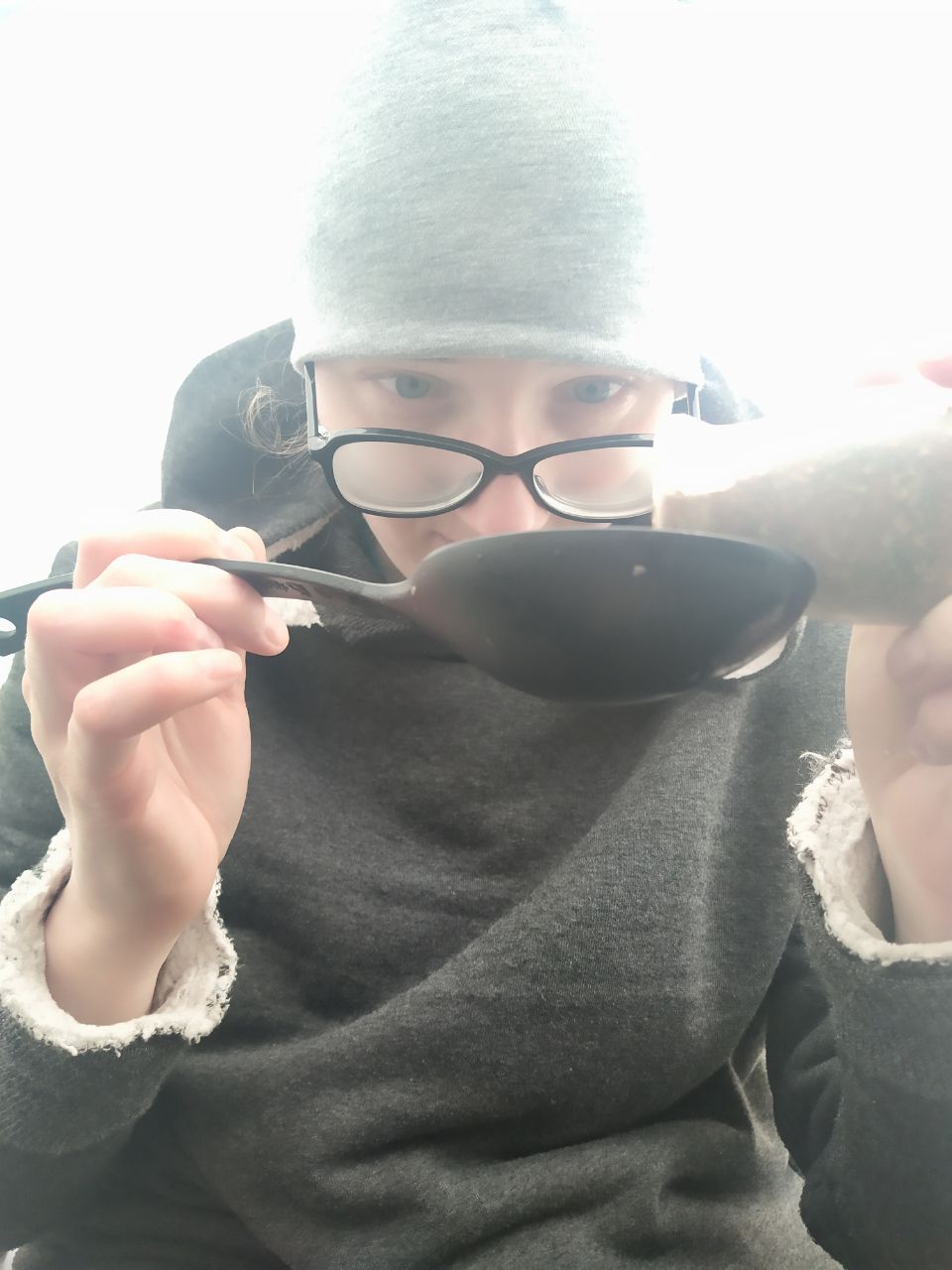 Из за ветра, дождя и града кухню перенесли в тамбур палатки, после приступили к приготовлению пищи.