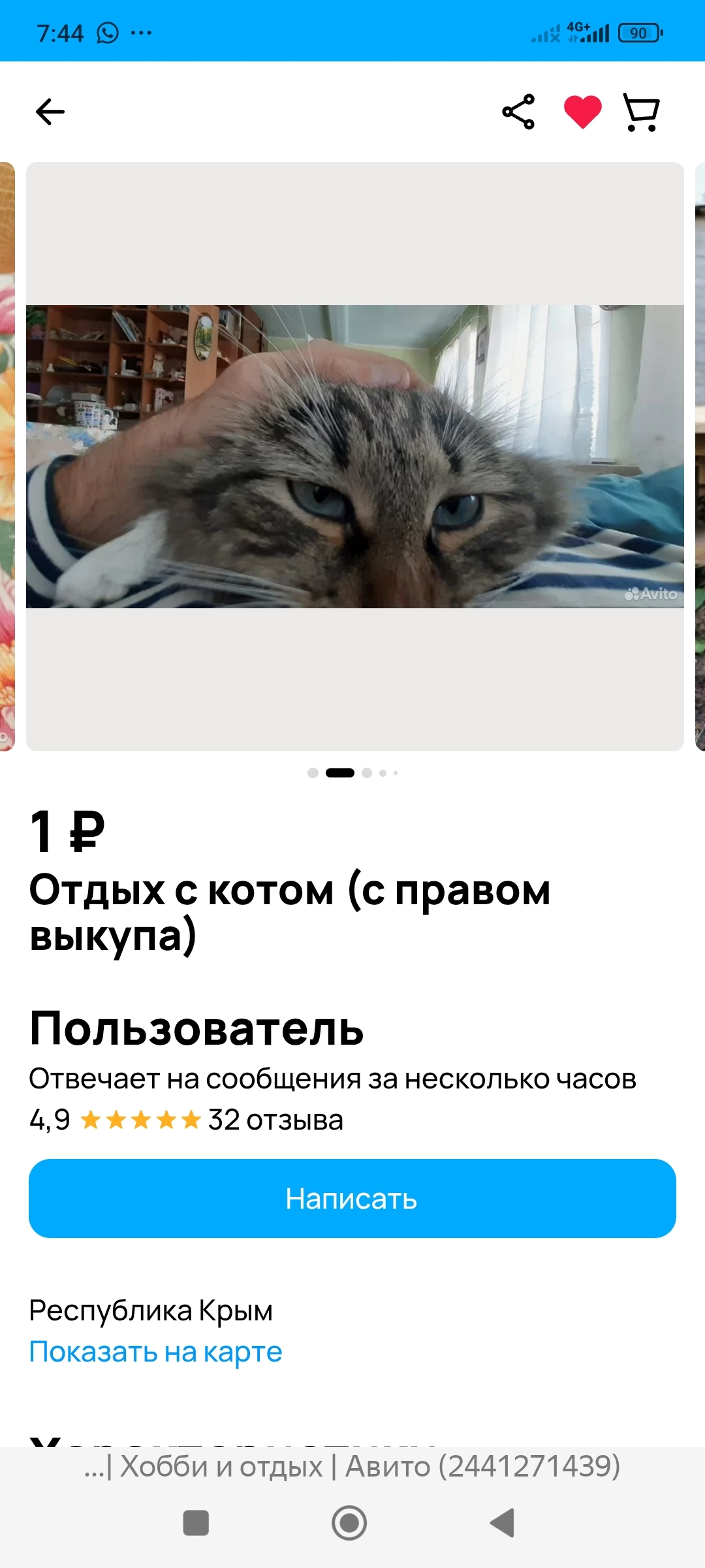 Отдых с котом (с правом выкупа) купить в Симоненко по низкой цене | Хобби и отдых | Авито