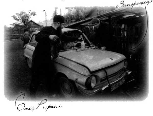 ...Тут-то и сбылась давняя мечта отца Рафаила о машине. Магнитофон немедленно был продан, и отец Рафаил выторговал себе во Пскове на автомобильном рынке старенький «Запорожец». Покупка была отвратительного грязно-оранжевого цвета.
