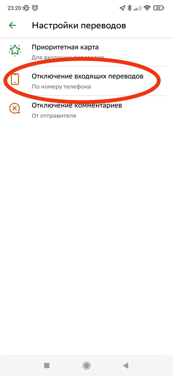Отключение входящего перевода в Сбербанке от клиентов Сбера