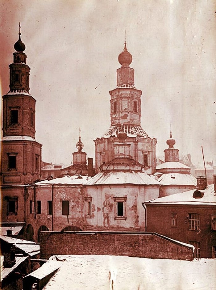 Это был Крестовоздвиженский храм на Воздвиженке, выстроенный неизвестно, когда (давайте называть вещи своими именами) и разрушенный в (внимание) 1934 году. Храм имел богатую историю. Есть в этой истории одна маленькая деталь.