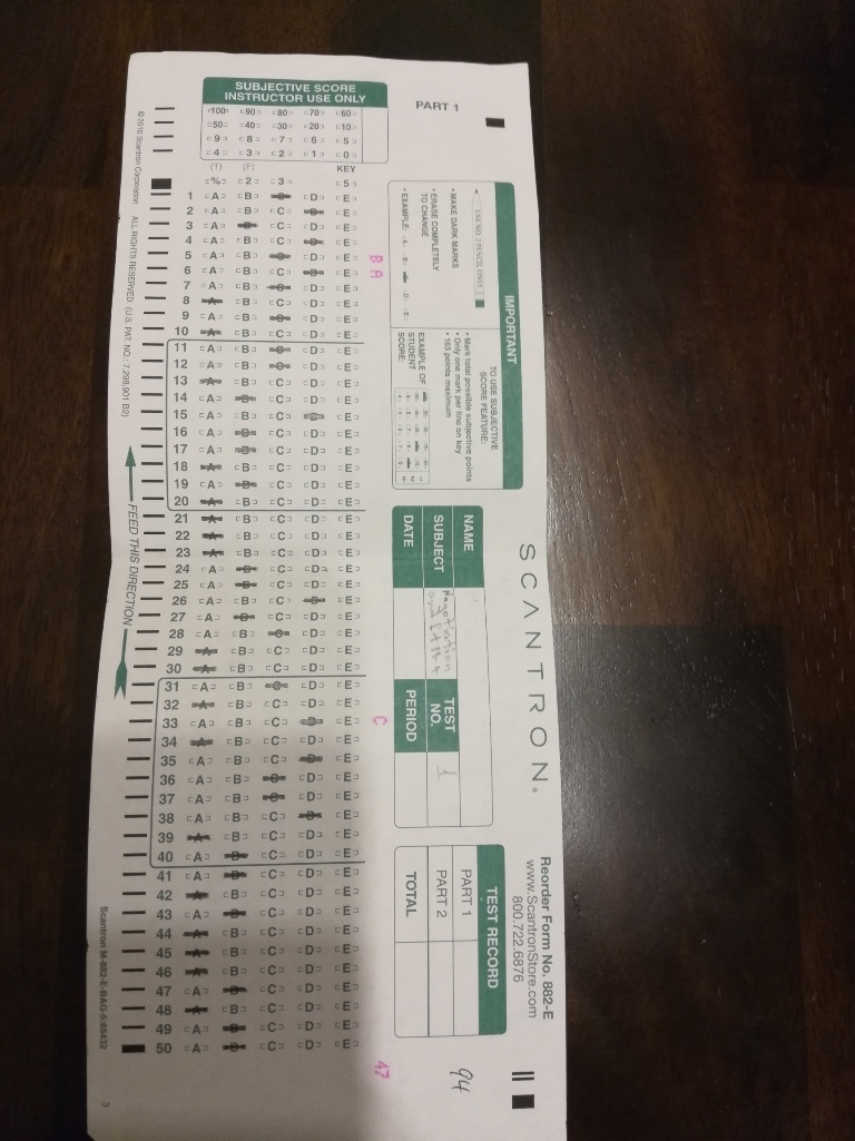 Студенты карандашом заполняют специальные листы, которые называются "скантроны", а на следующем занятии получают свои скантроны уже проверенными.