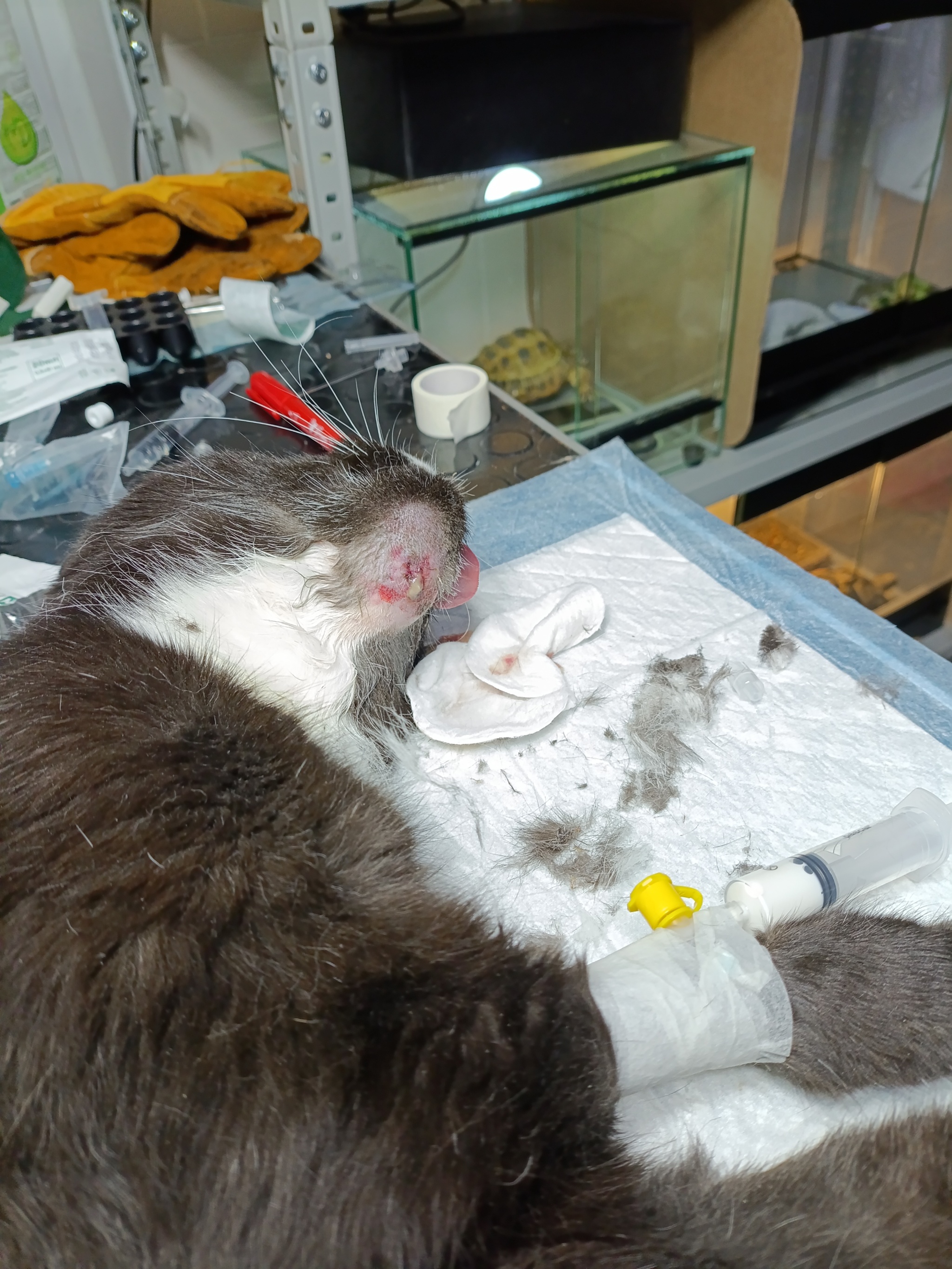 Думали ехать на рентген, очень твердая была штука (у нас уже была кошечка-красавица Тосенька с опухолью в челюсти), но на следующий день она стала более обширной и мы поняли, что это нарвавший абсцесс 🙏