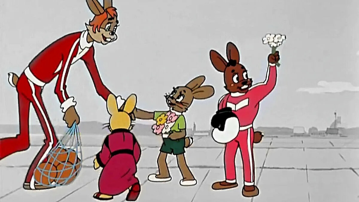 Но что беспокоило и цепляло глаз больше всего - в 13 эпизоде про олимпийские мероприятия заяц, как настоящий комсомолец, с охапкой цветов встречает интуристов. При этом цветами щедро одарены афронегробоксерский заяц и европогигантобаскетбольный заяц, а милейший сенсей-каратэазиатозаяц (заися-заися!) остается неохвачен цветами!!