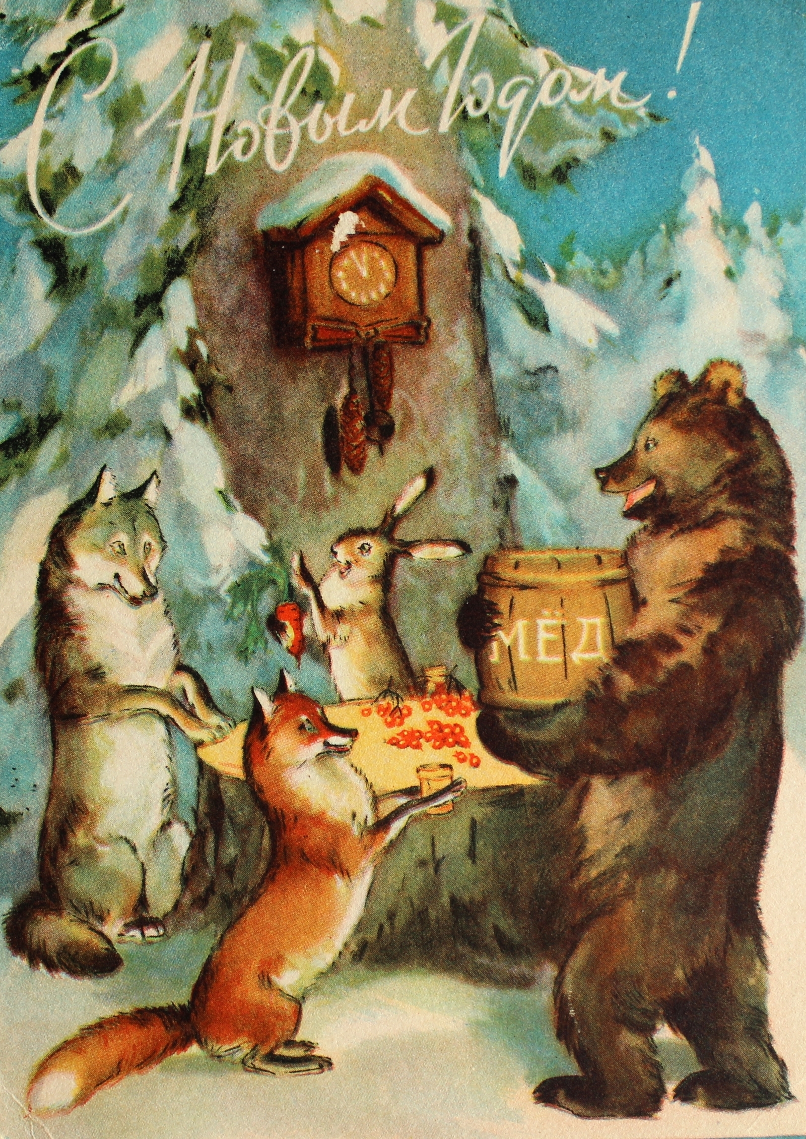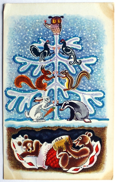 Что мне нравится в этих открытках, помимо интересных сюжетов и нарисованных безусловно хорошими художниками? От них веет добром и волшебством) И ещё - они без глупых блёсток и напечатанных примитивных стишков-пожеланий) Полюбуешься открыткой - и хочется написать на ней какие-то очень тёплые, душевные слова для конкретного человека.