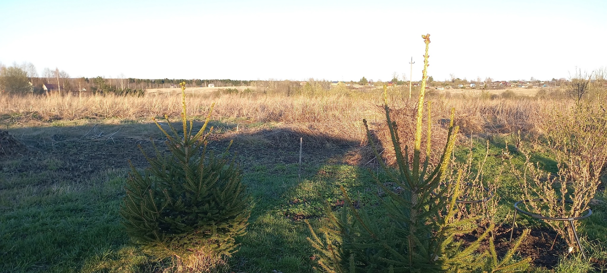 И вот фото "простора". Сухой бурьян, борщевик уже начал вылезать. Разгребать нам это всё снова не один год.