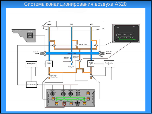 Воздух нужной температуры фильтруется и попадает в "коллектор", после чего уже попадает в салон и кабину пилотов. При температура в пассажирском салоне индицируется в кабине, а вот пилоты довольствуются "жопомером".