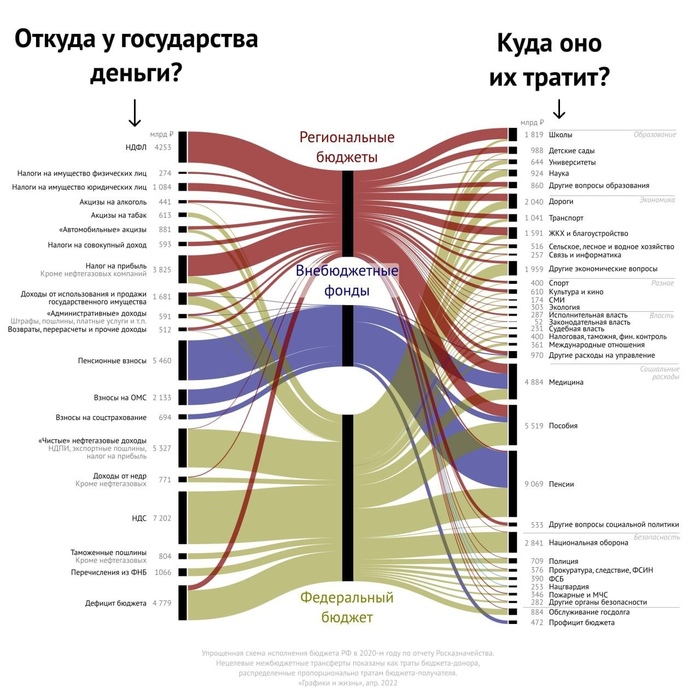 PhD.Faust Экономика Откуда берутся и куда уходят деньги 3 года назад Совсем упрощенно:1 НДФЛ и Налог на прибыль идет на финансирование социалки, медицины и образования.2 На НДС и нефтяной игле сидят пенсионеры, армия и силовики. Деньги Бюджет Ещё 0