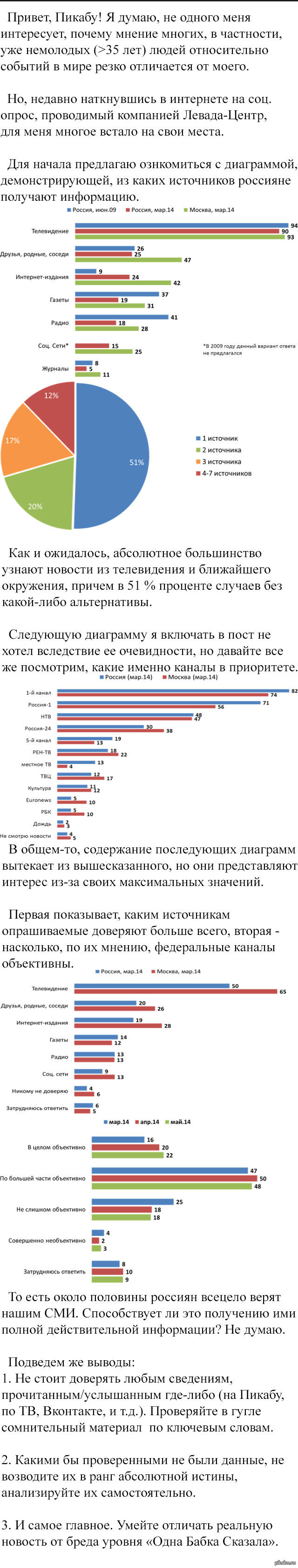 falconjke Откуда черпают информацию россияне? 11 лет назад Размер изображения 6 Мб. Ссылка на опрос в комментариях. Прошу прощения у людей старше 35 лет за классификацию их как "уже немолодых" :) [моё] Информация СМИ и пресса Телевидение Длиннопост Картинки