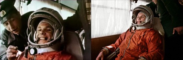 Шлем изначально был белый и знаменитая фотография без СССР сделана за несколько часов до старта, когда скафандр был только надет.