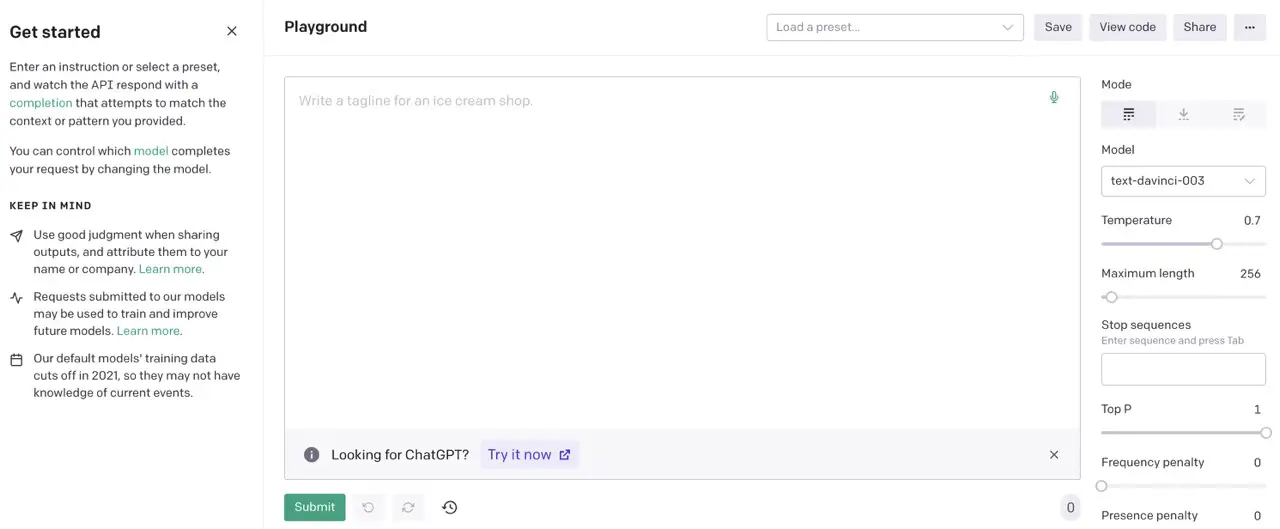 - У OpenAI также есть сервис «OpenAI Playground», в котором вы можете выбрать, какой GPT использовать.