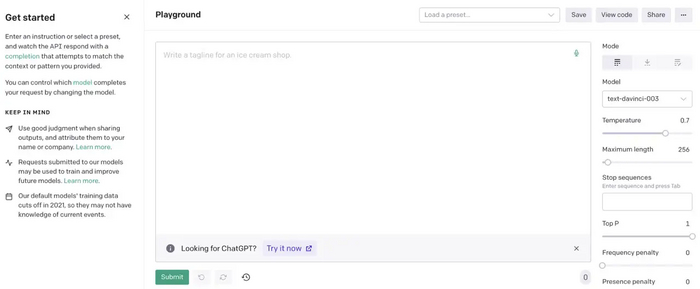 - У OpenAI также есть сервис «OpenAI Playground», в котором вы можете выбрать, какой GPT использовать.