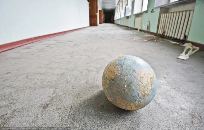 И чуть дальше по тому же коридору находится кладовая с кучей учебного материала, в том числе и глобусы. Покатилась земля наша… А мы тогда шутили, что географ глобус пропил.