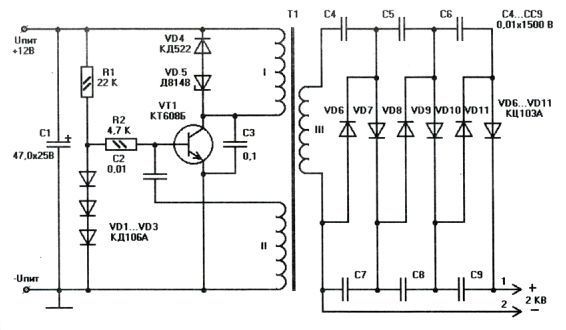 Даже не потрескивает, а возможно громкий свист в ультразвуке генератора переменного тока (а на постоянном умножитель напряжения работать не будет).