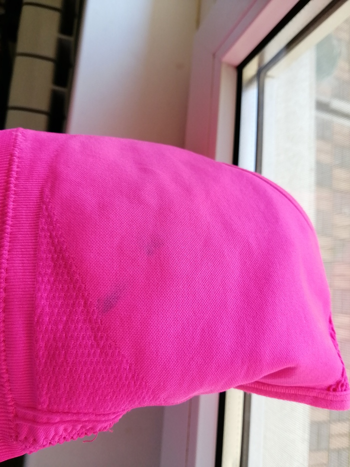 Пятно старое, возникло после того как одежду постирали в машинке. Частично чернила отмылись, а часть впитались намертво.