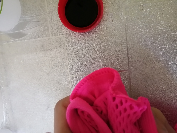 Далее наносим раствор на часть одежды, которая покажет как краска реагирует на наш раствор: