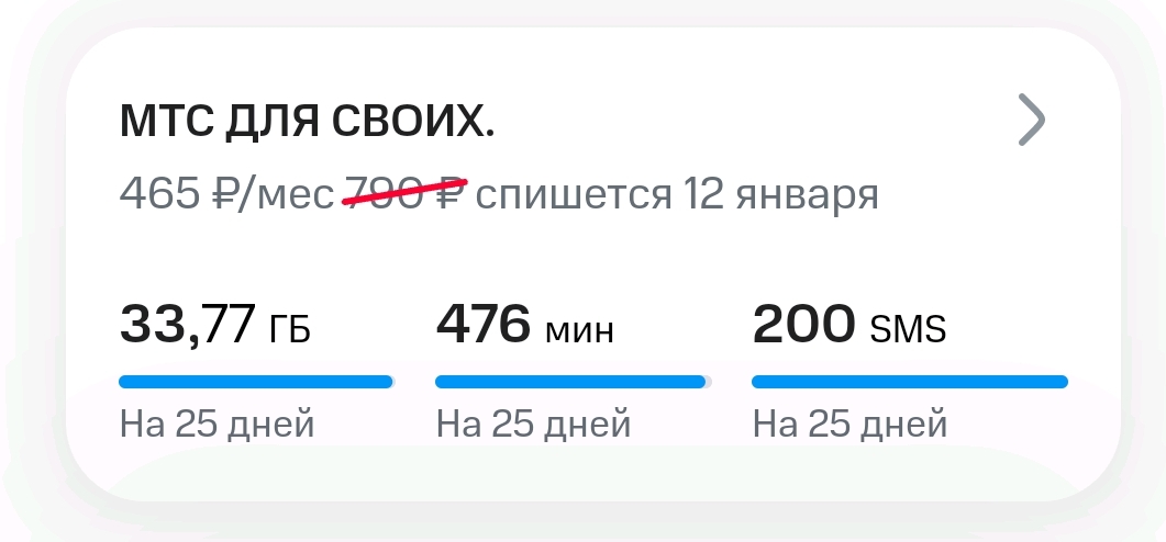 Всем привет. Начиналось всё просто, мне перестало хватать колличество гигабайт интернета на телефоне, посмотрев что предлагают операторы связи я выяснил что у меня не очень выгодный тариф. Мой оператор МТС и мои знакомые начали давать мне советы перейти к другому более дешёвому оператору. С МТС я давно, и прежде чем уходить решил позвонить оператору попросить скидку. Дозвонился ( с огромным трудом), говорю что хочу скидку они мне говорят не вопрос давай 20% от тарафа на несколько месяцев, я согласился. Мой тариф какой-то там smart настраиваемый, я использовал 500м, 35г за 465р. Тут же в личном кабинете отобразилось что следующее списание будет со скидкой. В назначенный день мне приходит сообщение что мой тарифный план меняется на мтс для своих вот такой.