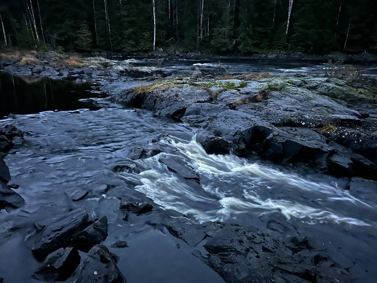 А чуть ниже по реке находятся пороги. Мы остановились там на обратном пути, когда уже почти стемнело