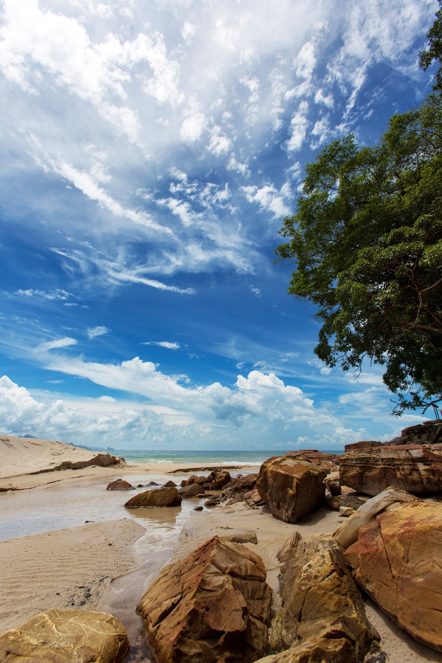 На третий пляж мы поехали сразу после спуска с горы. Пляж называется Tanjung Rhu и вообщем народу с утра на нем практически не было. Правда Левая часть пляжа с лежаками только для постояльцев отеля.