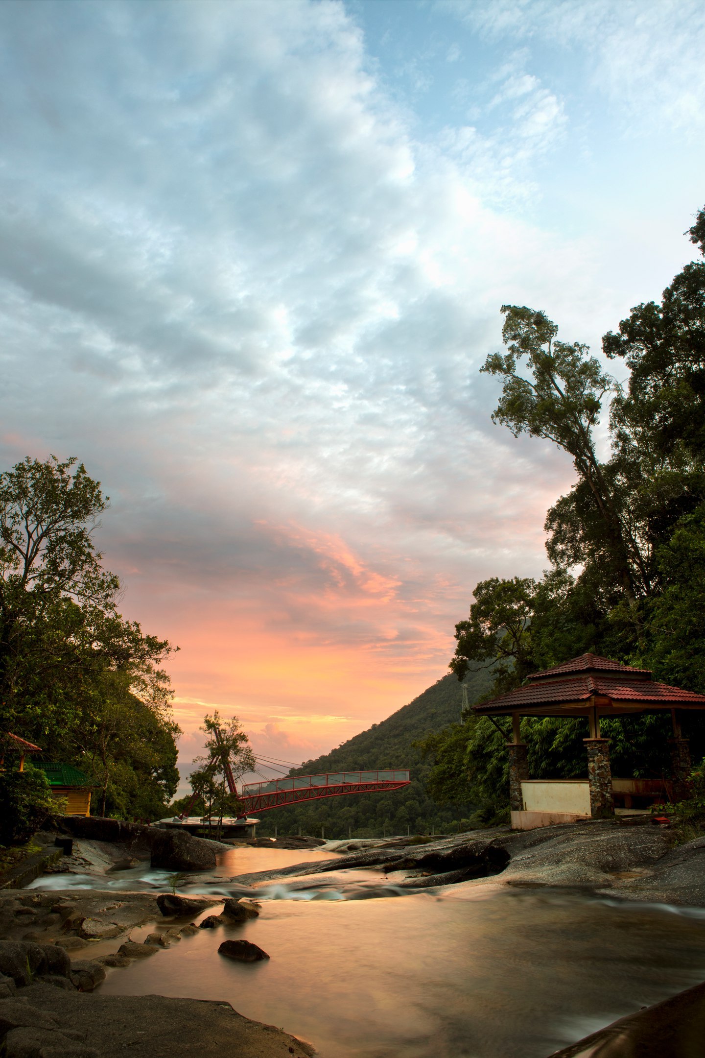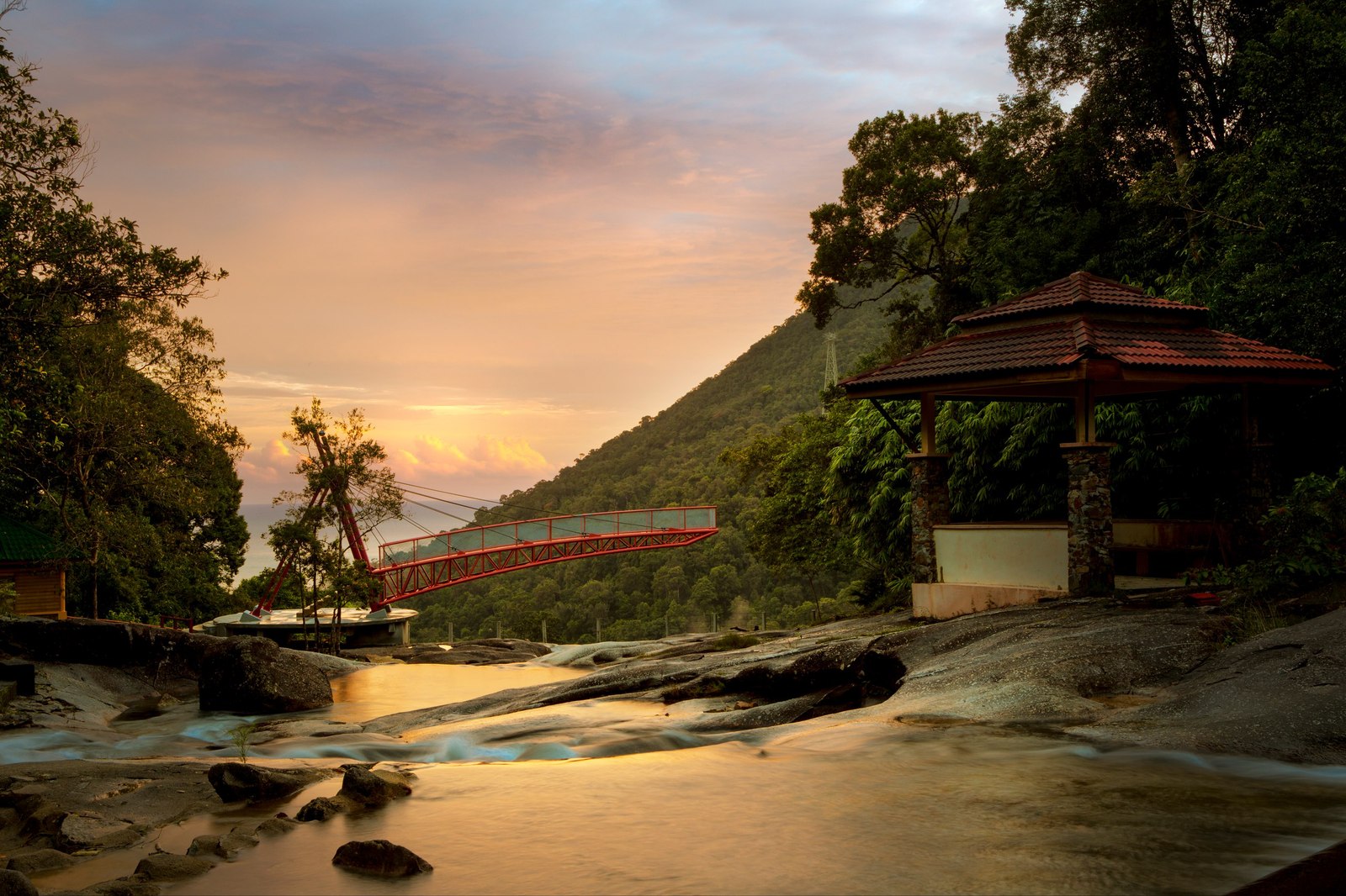 Место красивое, особенно в лучах заката. Над водопадом есть обзорная площадка с прозрачным полом.