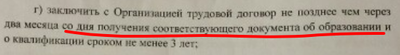 заключить с организацией, указанной в подпункте «в» пункта 3 настоящего договора, трудовой договор (контракт) не позднее чем через ___ месяцев со дня получения соответствующего документа об образовании и о квалификации;"
